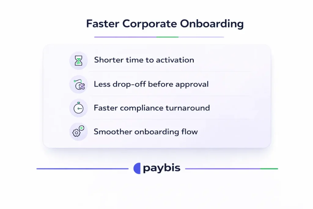- Corporate onboarding is faster, with redundant steps removed and compliance handoffs redesigned so review begins the moment documents arrive. It reduces drop-off between client intent and activation.