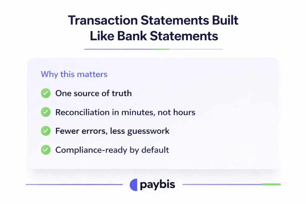 - Bank-grade transaction statements now include sender IBANs and blockchain transaction hashes. It makes reconciliation and tax categorisation a single-source process for finance and compliance teams.