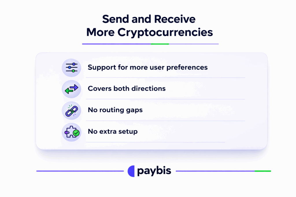 For partners running volume in corridors where these assets are preferred, or working with clients who hold or transact in these currencies, the expansion removes a routing gap that previously required a workaround or a separate provider.